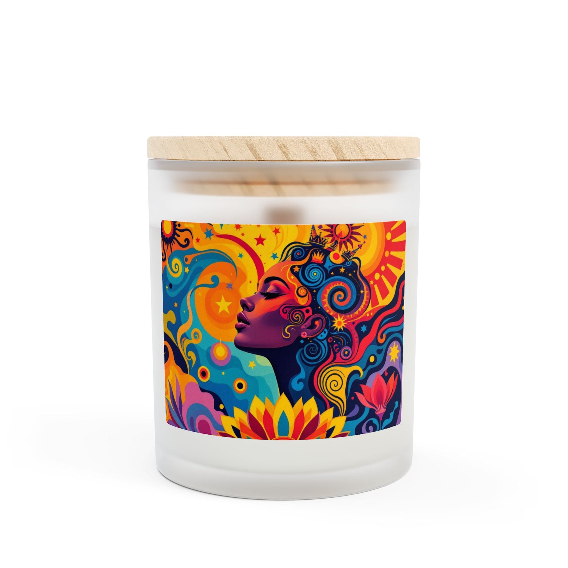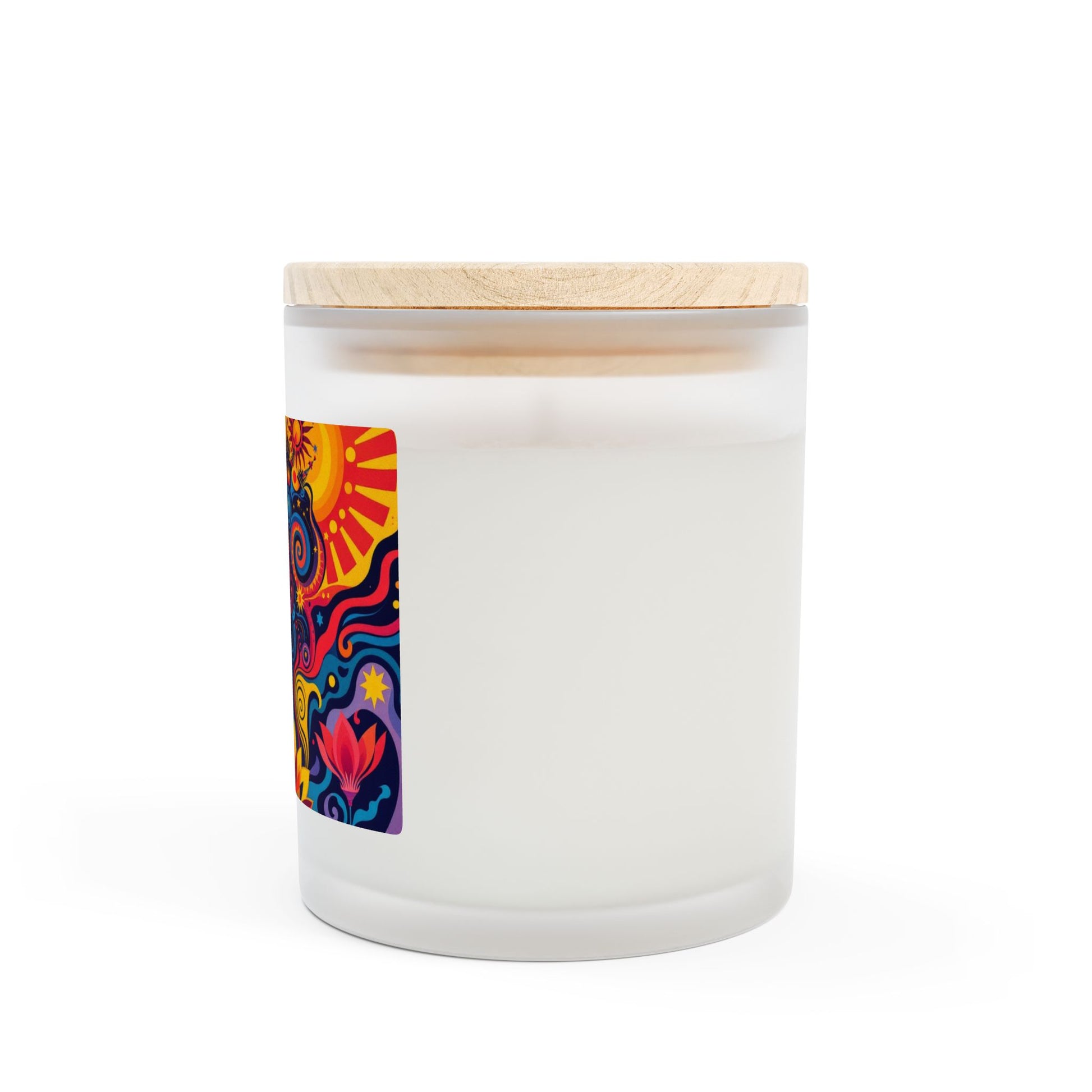Experience a mesmerizing blend of floral artistry with our Kaleidoscope Garden candle, where vibrant psychedelic patterns merge with delicate botanical designs. This artisanal wooden wick candle transforms your space into a magical garden of color and light.