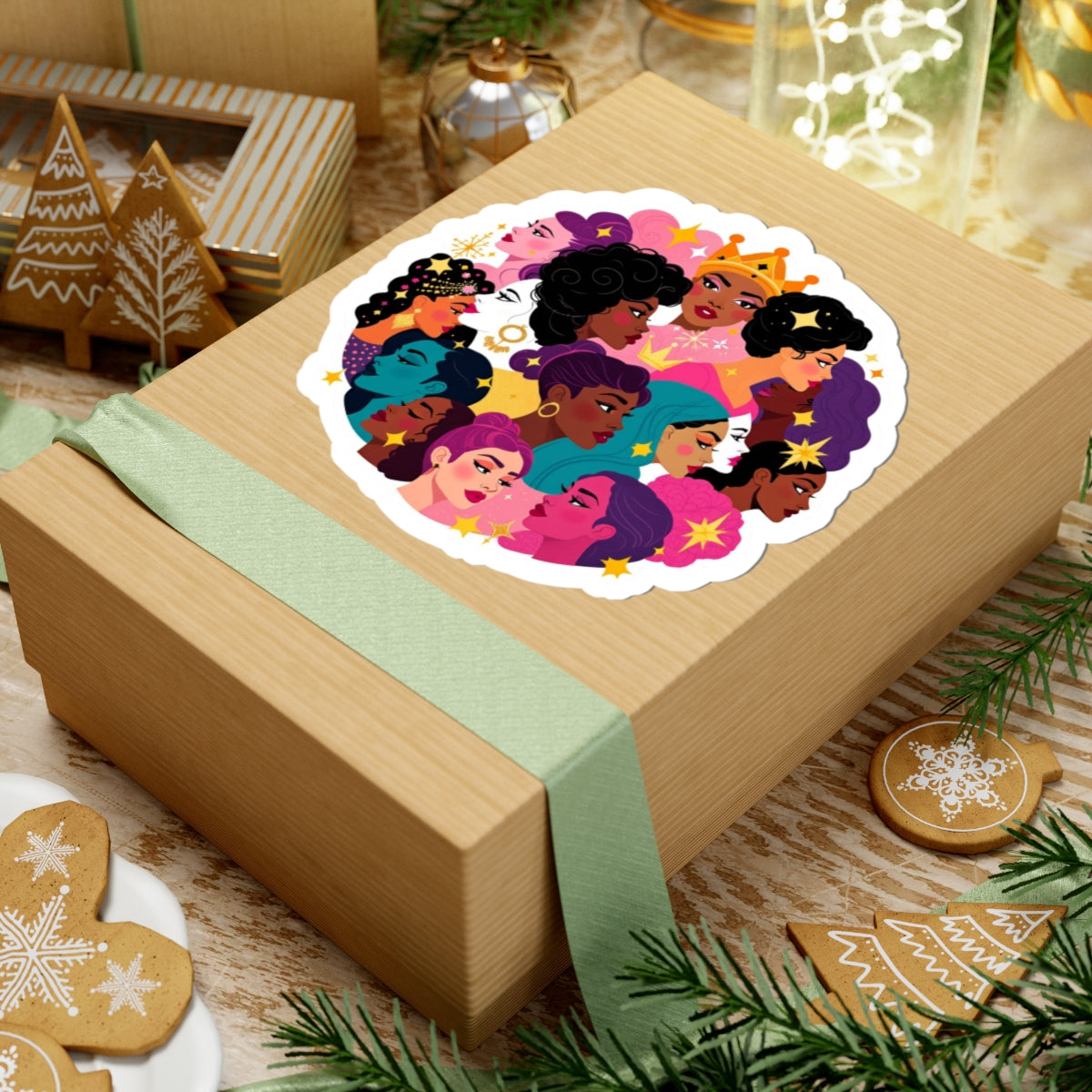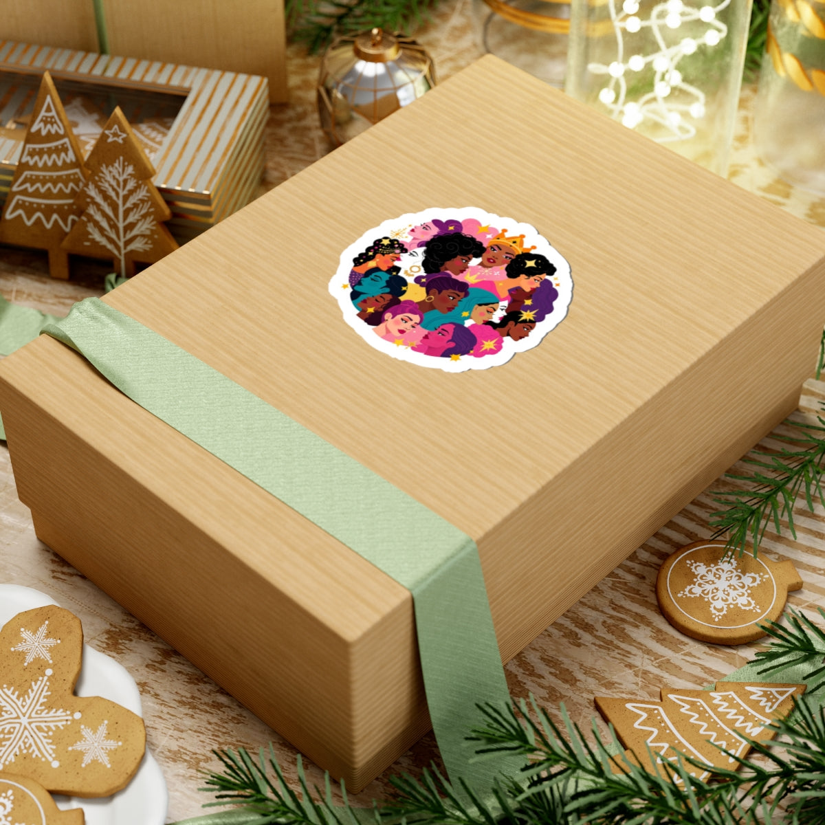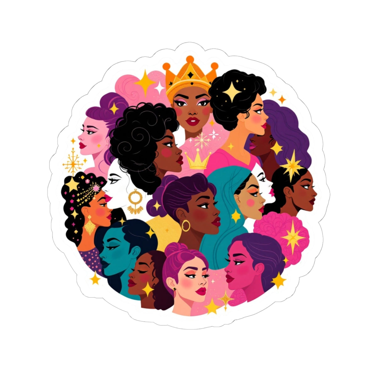 Celebrate the beauty of diversity and strength with our empowering sticker design. Features a vibrant collection of women embracing their unique beauty and power, perfect for adding a bold statement of confidence and unity to your personal items.