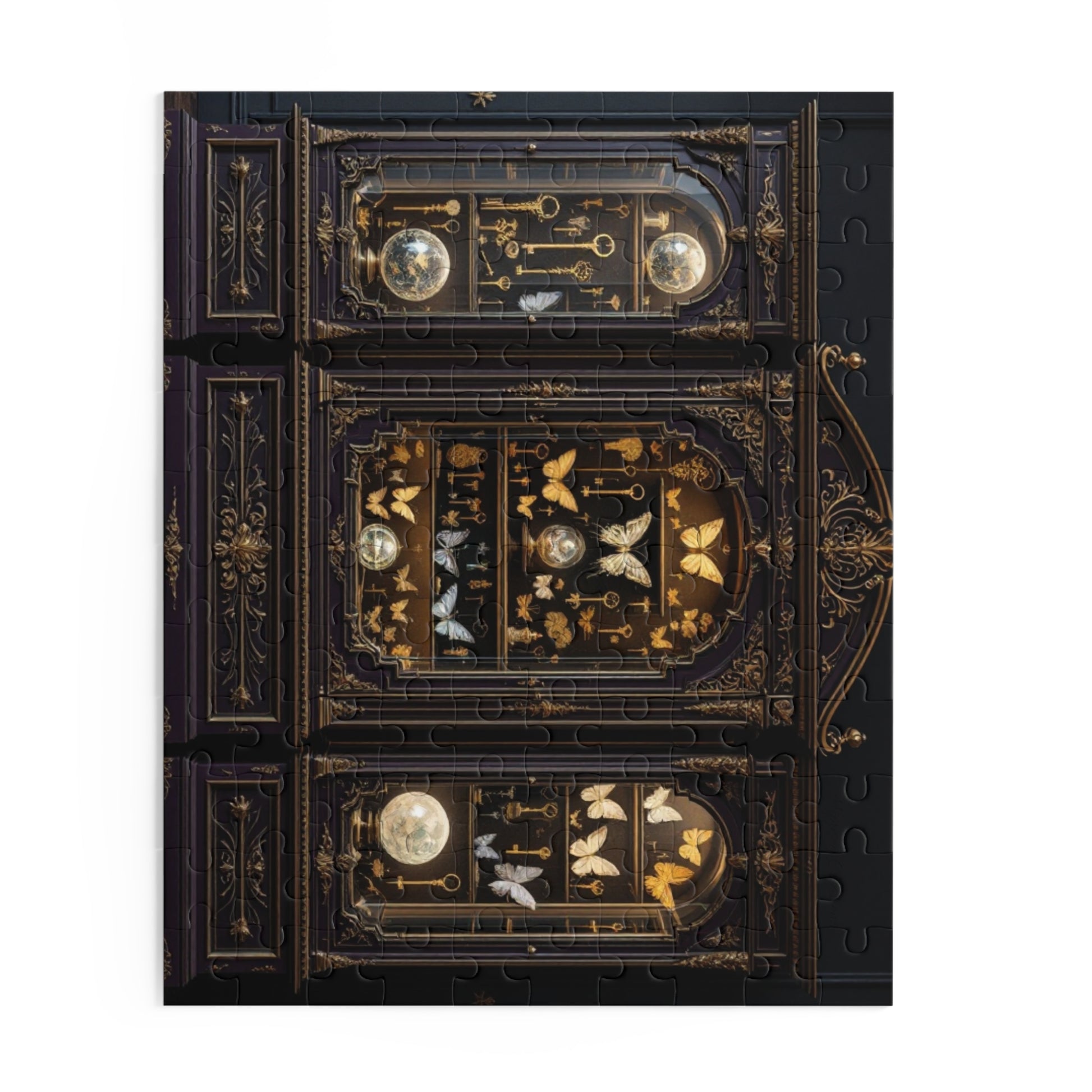 Discover the dark elegance of a Victorian butterfly collection, where delicate specimens rest in moonlit display cases. This sophisticated puzzle invites you to piece together a mysterious world of preserved beauty, ornate frames, and vintage scientific charm.